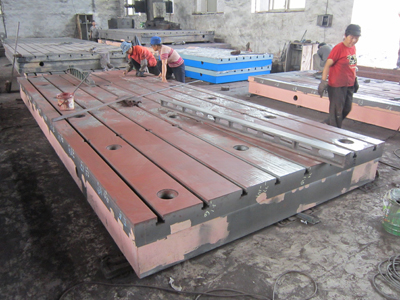 我公司專業(yè)生產(chǎn)加工量具及鑄件:電機(jī)試驗(yàn)臺(tái)、圓平臺(tái)、落地鏜床工作臺(tái)、火工平臺(tái)、檢驗(yàn)平臺(tái)、劃線平臺(tái)、鉚焊平臺(tái)、裝配平臺(tái)、動(dòng)力機(jī)械震動(dòng)試驗(yàn)臺(tái)(又稱槽鐵或地梁、地軌)、立車工作臺(tái)、龍門銑刨床工作臺(tái)、機(jī)床床身鑄件、立柱、橫梁 機(jī)床滑座,模具墊板、鑄鐵底座和鼓風(fēng)機(jī)殼及配件、汽車模具 壓重體鑄件。我公司專業(yè)承接:HT200、HT250、HT300(40T/件以下的)高牌號(hào)大型鑄件與球墨鑄件均采用樹(shù)脂砂造型工藝,所生產(chǎn)的鑄件具有外觀光潔、加工余量小等特點(diǎn)。